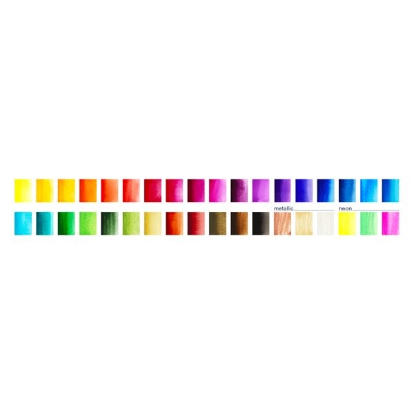 Souprava 36 kusů kvalitních akvarelových barev s odnímatelnou paletkou pro mixování barev a štětečkem se zásobníkem na vodu.