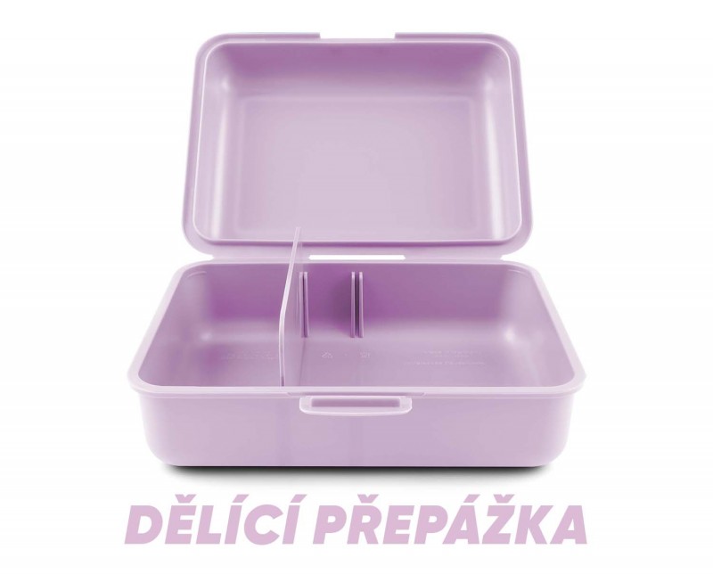 Plastový box na svačinu ve černé barvě Box má uzavírání na jeden zámek a dělicí přepážku. Nedoporučujeme mýt v myčce.