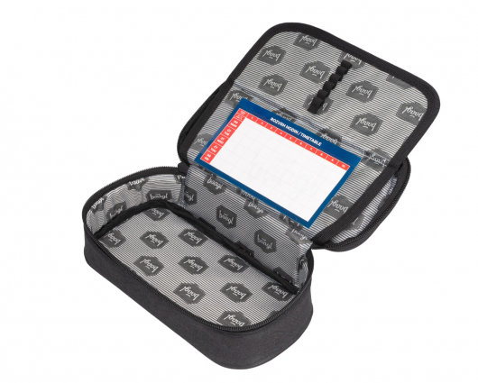 • Pevný penál na zip s dvojitou výklopnou chlopní.