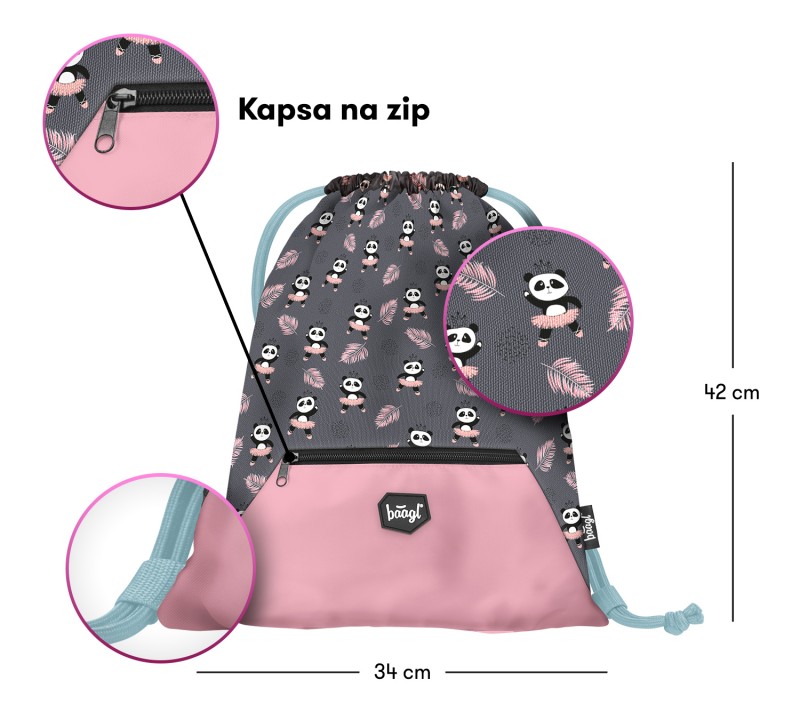 Baagl set 3 Zippy Panda: aktovka, penál, sáček