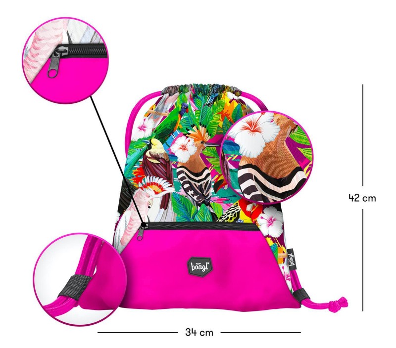 • Sáček je vyroben z pevného omyvatelného materiálu a v jeho dolní části je umístěna praktická kapsička na zip.