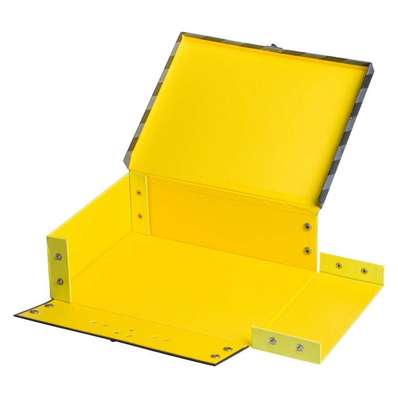 Jedinečný znovu rozkládací kufřík s obrázkem bagru bezpečně uschová všechny školní potřeby. Jednoduchý systém skládání pomocí patentků.