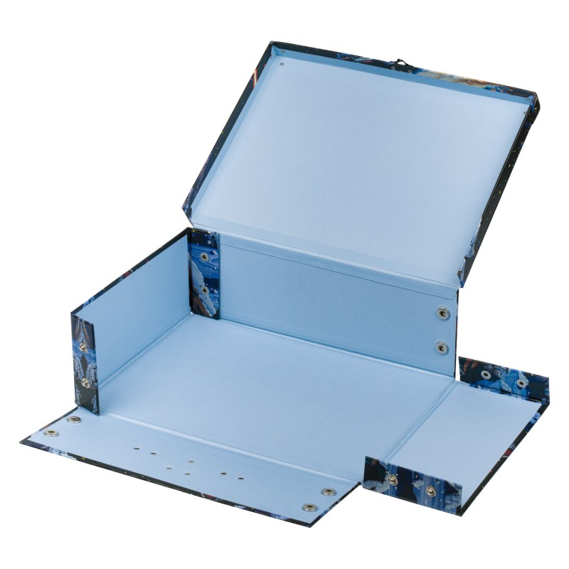 Díky důmyslnému systému patentek a okovaným rohům jej lze během několika vteřin snadno rozložit i složit. Praktický skládací kufřík na výtvarnou výchovu, hračky či drobnosti.