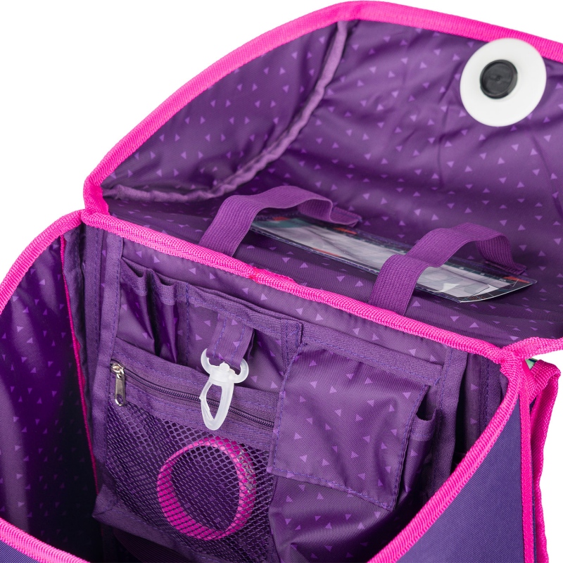 • Uvnitř aktovky je průhledná kapsa s rozvrhem a vnitřní organizér umožňující rovnoměrné rozložení hmotnosti.
