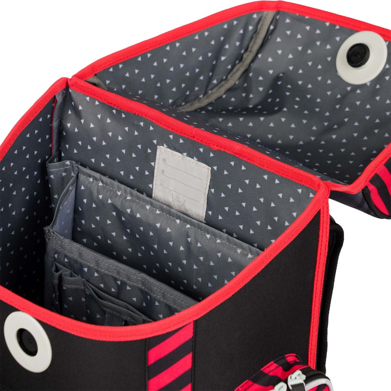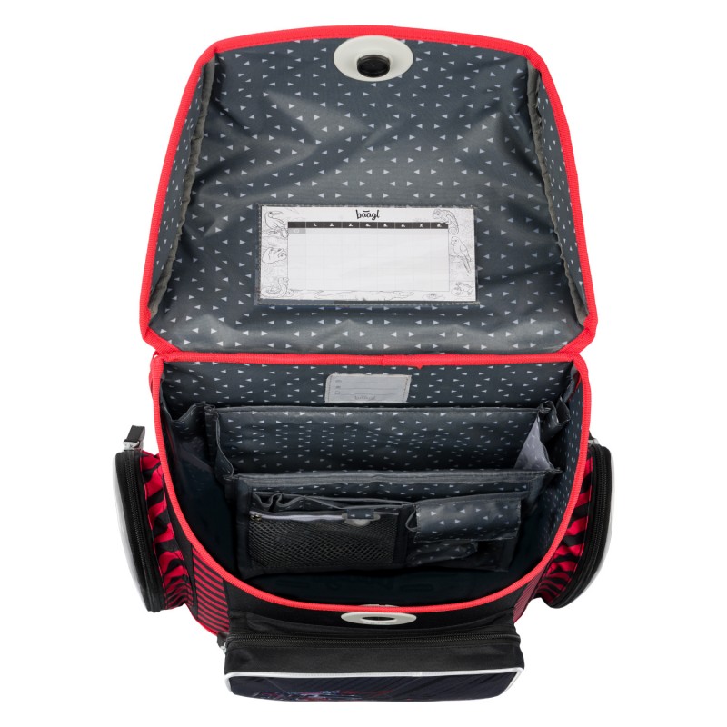 • Uvnitř aktovky je průhledná kapsa s rozvrhem a vnitřní organizér umožňující rovnoměrné rozložení hmotnosti.
