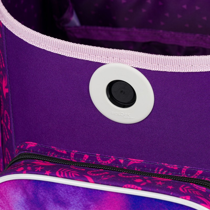 Dívčí fialová aktovka ERGO s motivem koně je vhodná od 1. třídy ZŠ. Unikátní magnetické zapínání Fidlock usnadní prvňáčkům manipulaci.