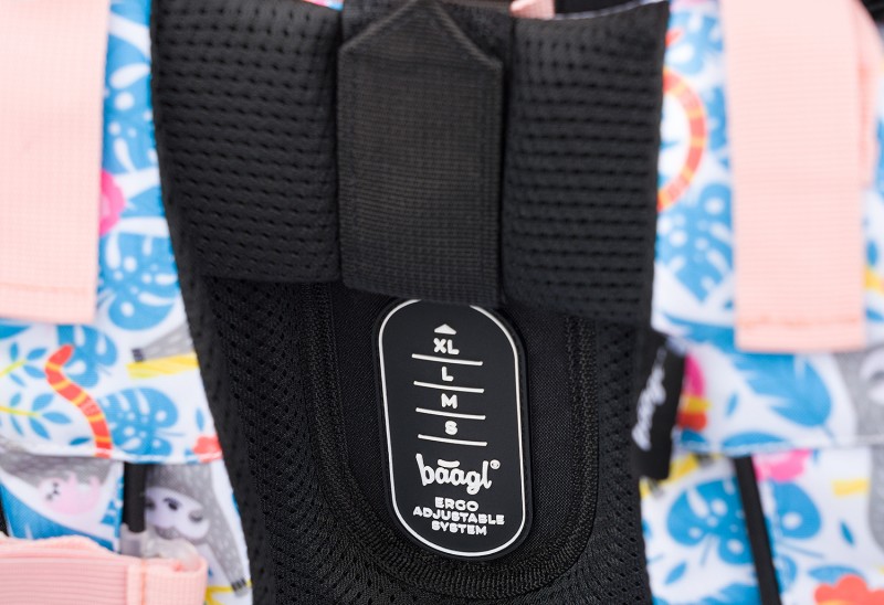 • Posuvný zádový systém ERGO ADJUSTABLE SYSTEM umožňuje nastavení optimální polohy popruhů vzhledem k výšce dítěte.