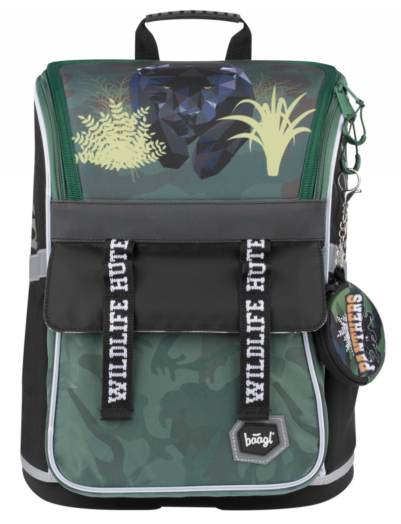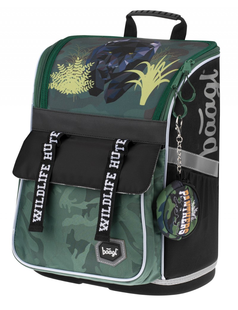 Zeleno-černá školní aktovka Zippy Panter, vhodná pro žáky 1.–2. třídy ZŠ.