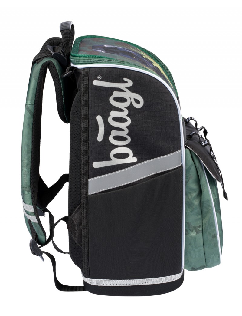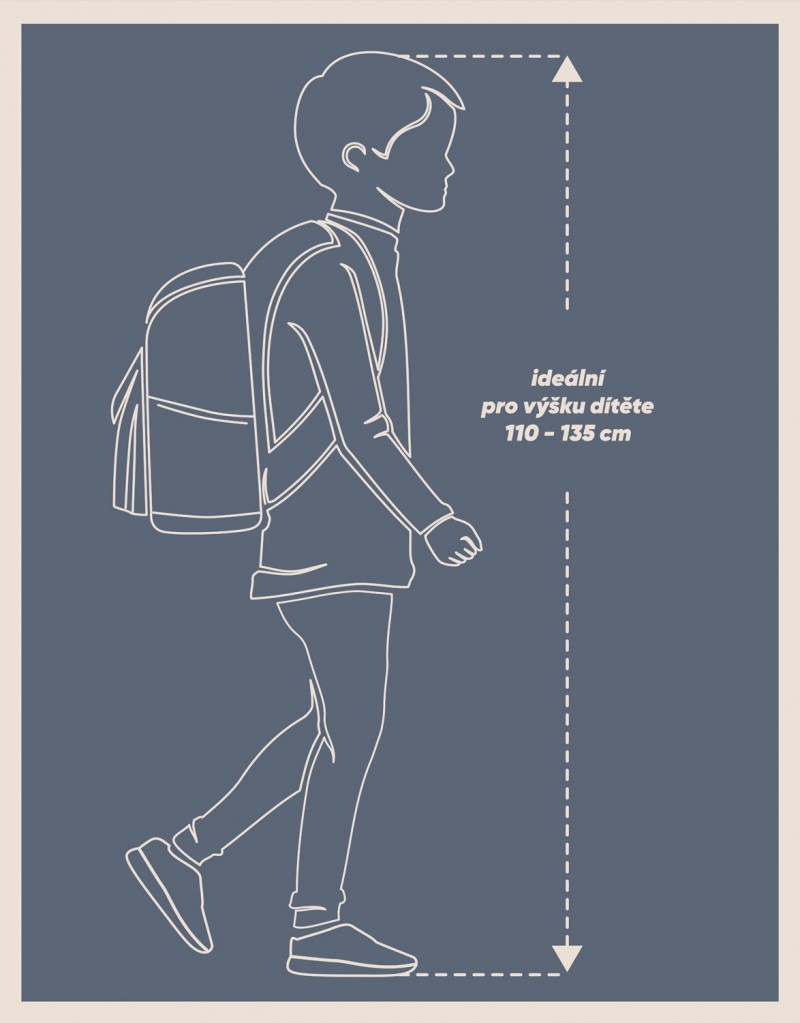 • Ergonomická školní aktovka s vyztuženým tělem, vnitřním organizérem a třemi oddělenými kapsami.