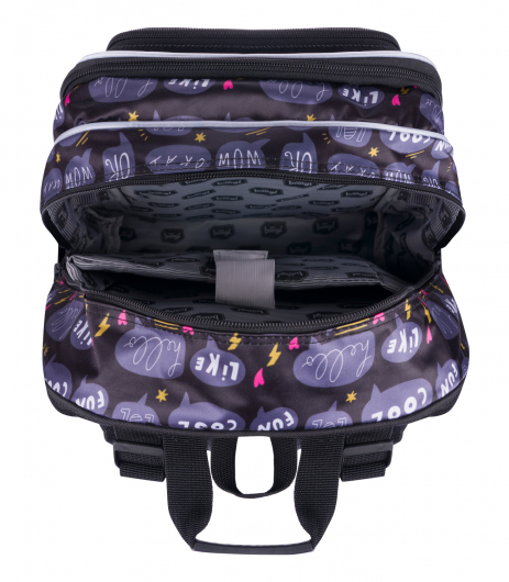 • Tři samostatně uzavíratelné komory s vnitřním organizérem a kapsou na 15palcový notebook či tablet. Tento vnitřní organizér umožňuje rovnoměrné rozložení hmotnosti.