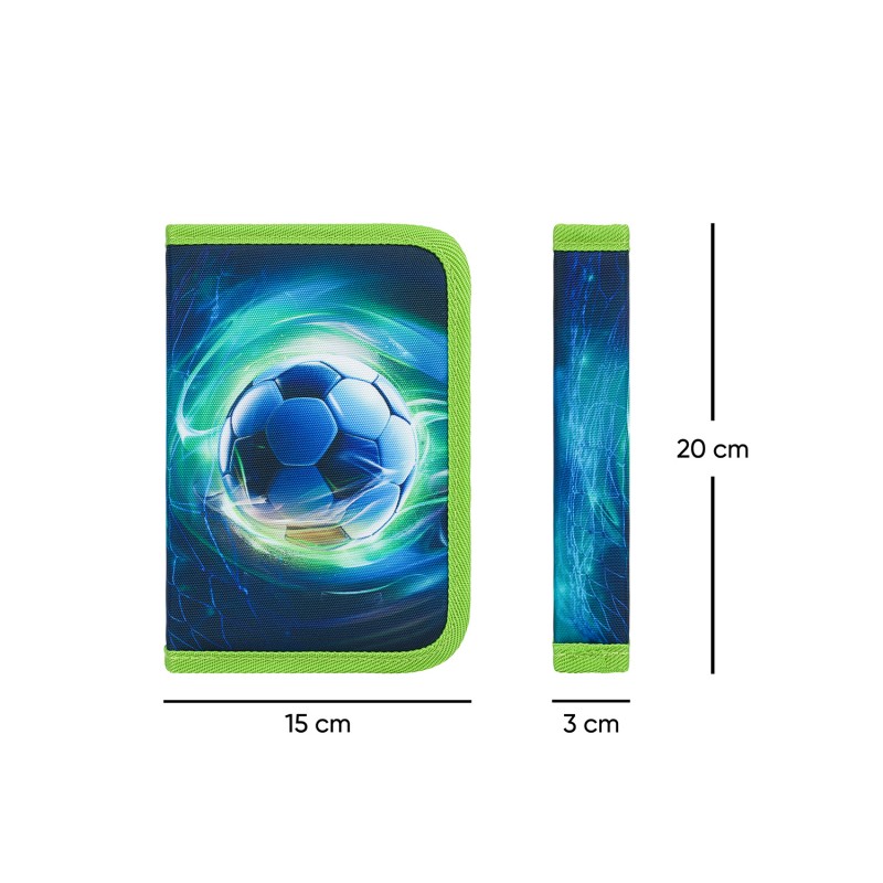 BAAGL školní penál jednopatrový Fotbal Míč je skvělým doplňkem pro každého milovníka fotbalu. Tento klasický školní penál disponuje jedním patrem a dvěma chlopněmi, což poskytuje dostatek úložného prostoru pro tužky, gumičky nebo pastelky.