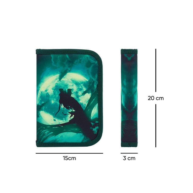 Zelený školní penál s potiskem draka, který potěší každého milovníka tohoto pohádkového tvora.
