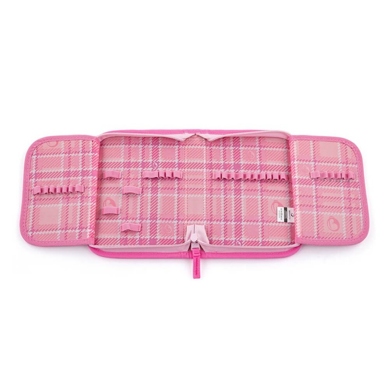 Školní penál pro holky, dvouchlopňový se spoustou gumiček, motiv panda.