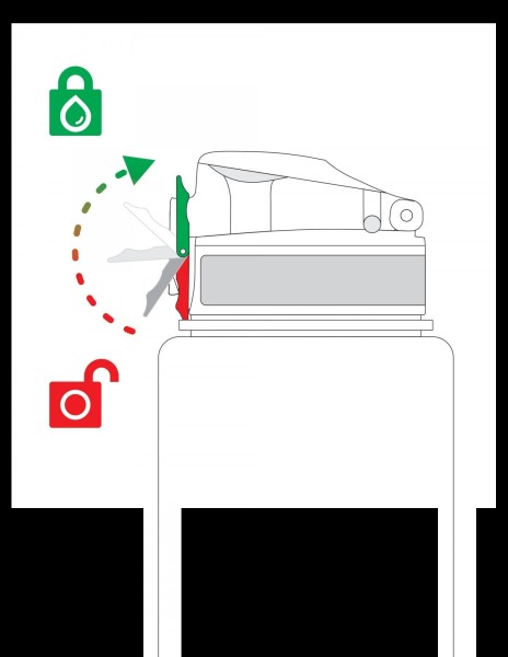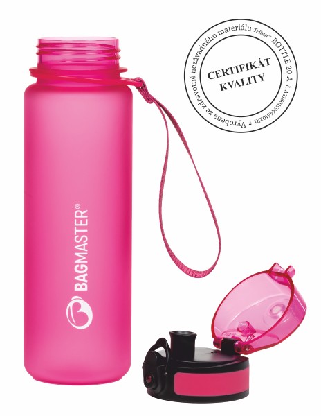 Láhev na pití, atestovaná. Automatické otevírání s pojistkou proti vylití.