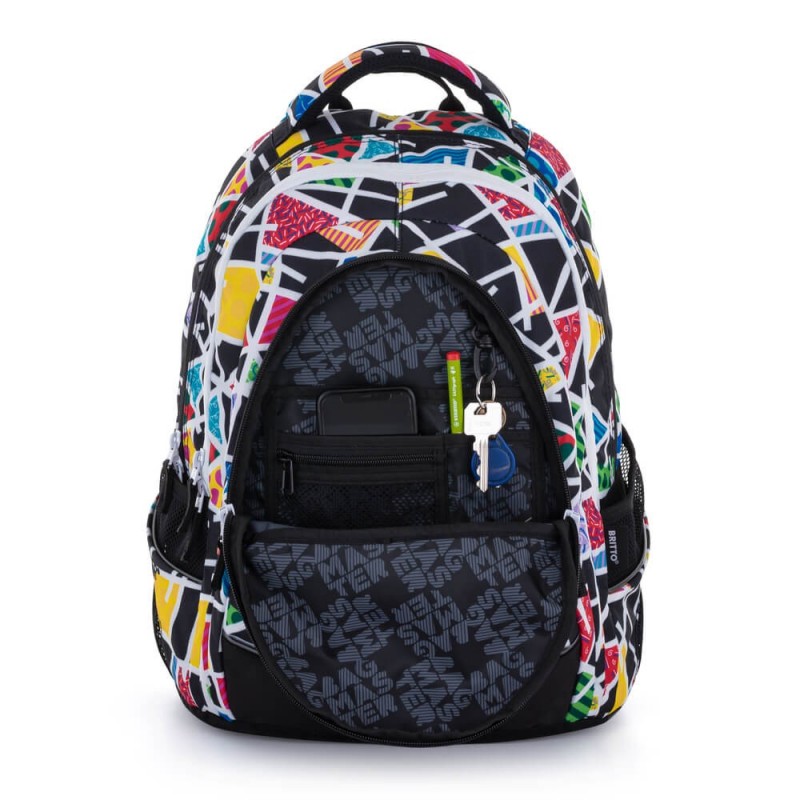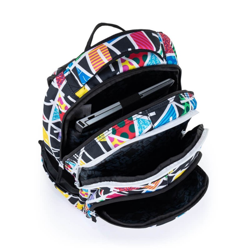 - Pokud se nebojíš vzít si na záda veselé barvy a libuješ si v moderním umění, pak je tento baťoh přesně pro tebe (Design pomohl vytvořit brazilský umělec Romero Britto. Rád kombinuje popart, kubismus a graffiti).