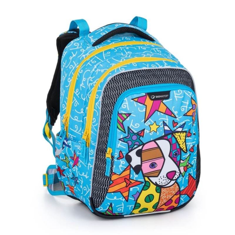 1.-3.třída ZŠ. Tříkomorový školní batoh pro holky i kluky do první třídy s motivem pejska.