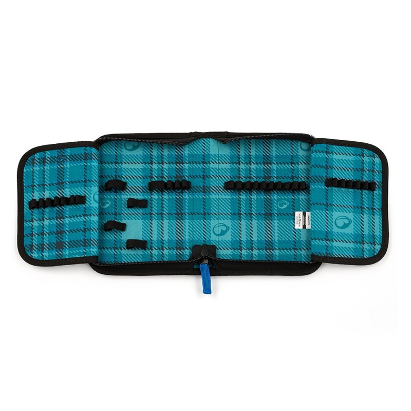 - Do pružných úchytů uvnitř pouzdra si přehledně uspořádáš pastelky, tužky, pravítka, gumu i další školní pomůcky.