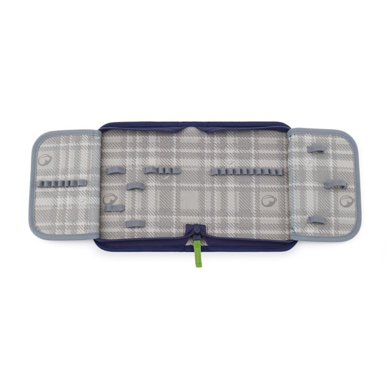 Školní penál pro malé průzkumníky na první stupeň základky. V řadě gumových úchytů rozmístěných na dvou otevíravých chlopních je dostatek místa na pera, tužky a pastelky. Pouzdro se šikovně vejde do každého školního batohu i aktovky.