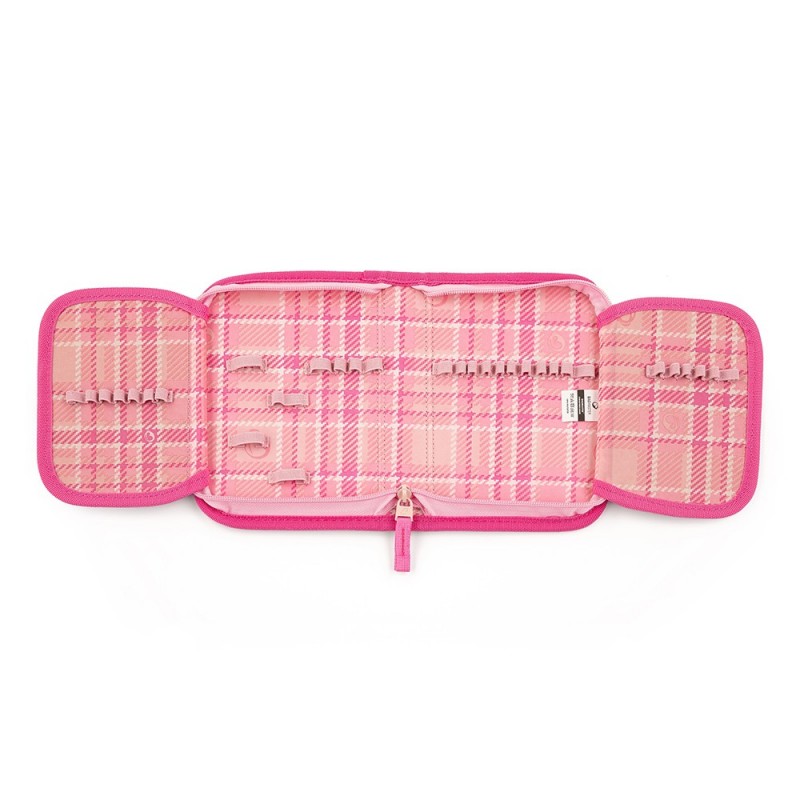 Dvouchlopňový penál s pandou pro malé školačky na prvním stupni. Pružná očka na praktické uspořádání všech pomůcek a psacích potřeb. Rozvrh hodin se samolepkami jako dárek.