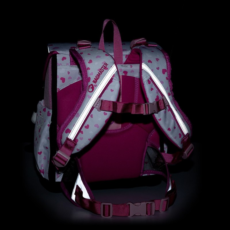 Aktovka je vhodná pro všechny drobné školačky do první a druhé třídě. Je extra lehká, má ergonomicky tvarovaná záda a přehlednou prostornou hlavní komoru. Do bočních kapsy patří láhev s pitím a deštník. Ozdobou aktovky je chlupatý přívěsek a reflexní prvky.