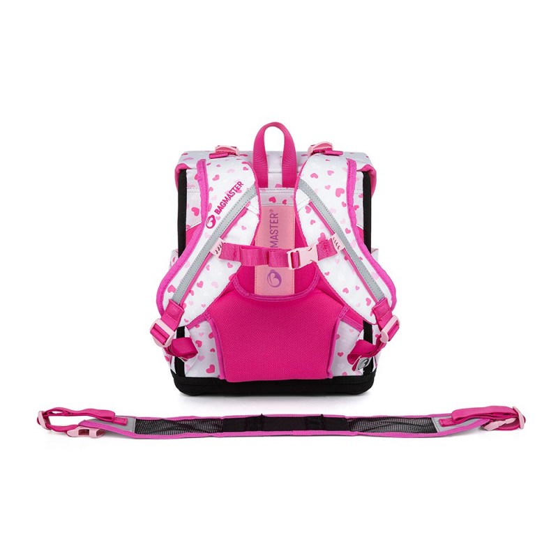 - Pevné a široké popruhy neřežou na ramenou. Pomocí přezek se dá nastavit délku popruhů na postavu školačky.