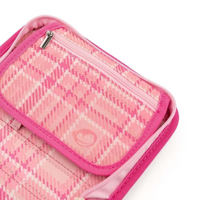 - Drobnější věci si může školačka schovat do kapsy na zip, která je přes celou šířku horní části vaku.