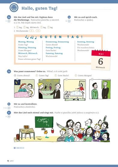 - integruje doplňková interaktivní cvičení na výslovnost, slovní zásobu, gramatiku a komunikaci