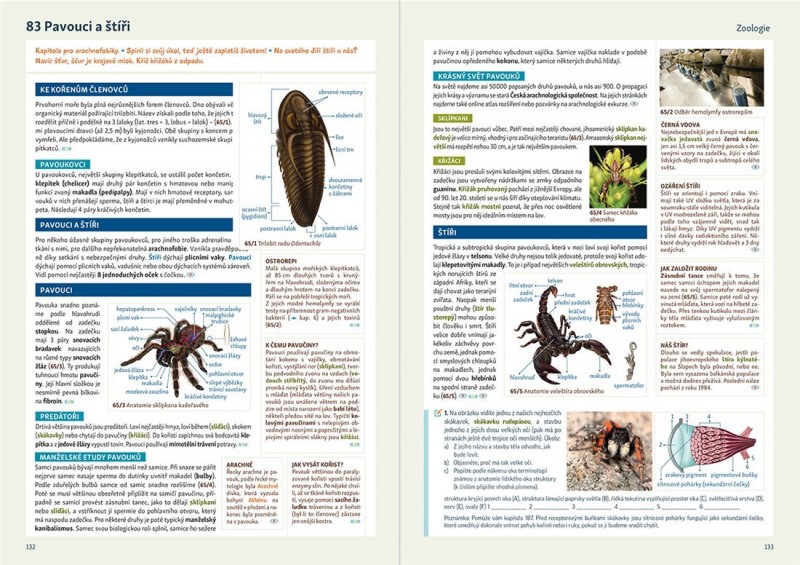 Učebnice obsahuje 52 dvoustránkových kapitol celku Zoologie.