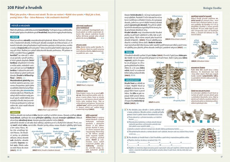 Učebnice obsahuje 58 dvoustránkových kapitol celků Biologie člověka a Genetika.