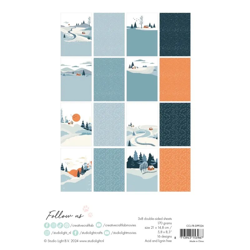 Blok podkladových papírů Studio Light "Winter Landscape" je ideálním doplňkem pro vaše scrapbookingové a jiné výtvarné projekty.