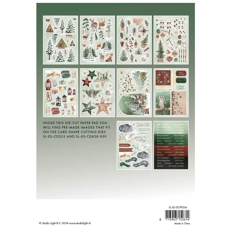 Blok s papírovými výseky Studio Light ve formátu A5 je perfektní pro všechny milovníky vánočních motivů. Tento blok obsahuje 20 listů s motivy Vánočního lesa, které můžete využít k vlastní tvorbě vánočních přání, ozdob nebo scrapbookování.