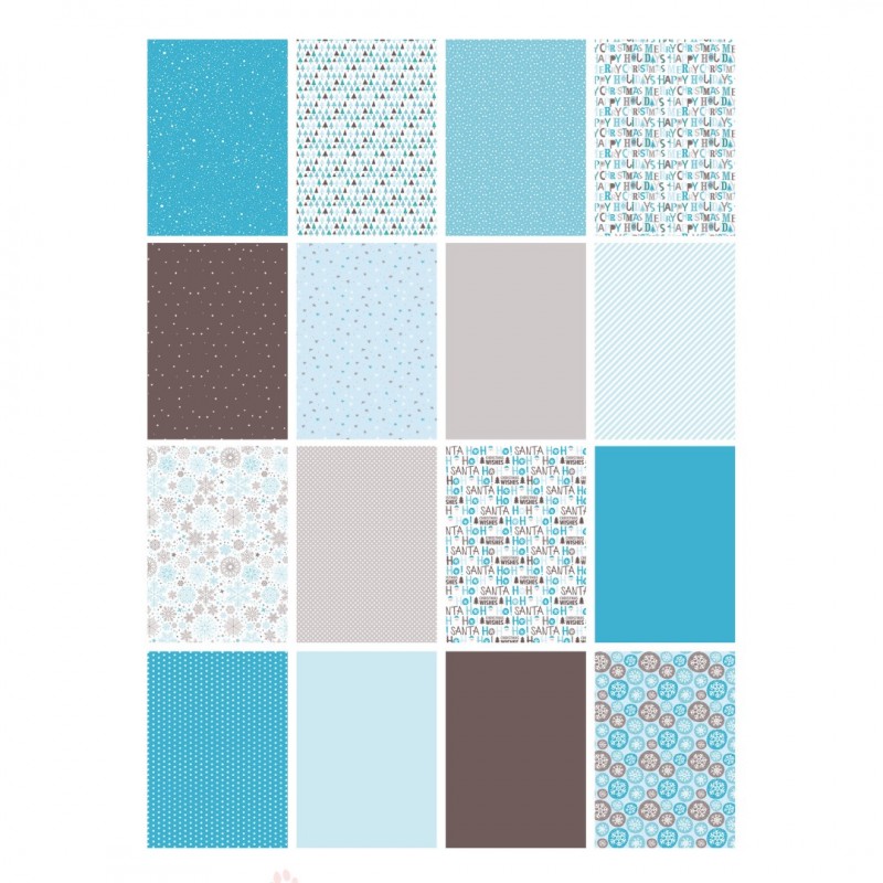 Sada vzorovaných papírů s vánočními vzory v modro-hnědých tónech. Papíry využijete na scrapbooking, cardmaking, Project Life a další výrobky z papíru.