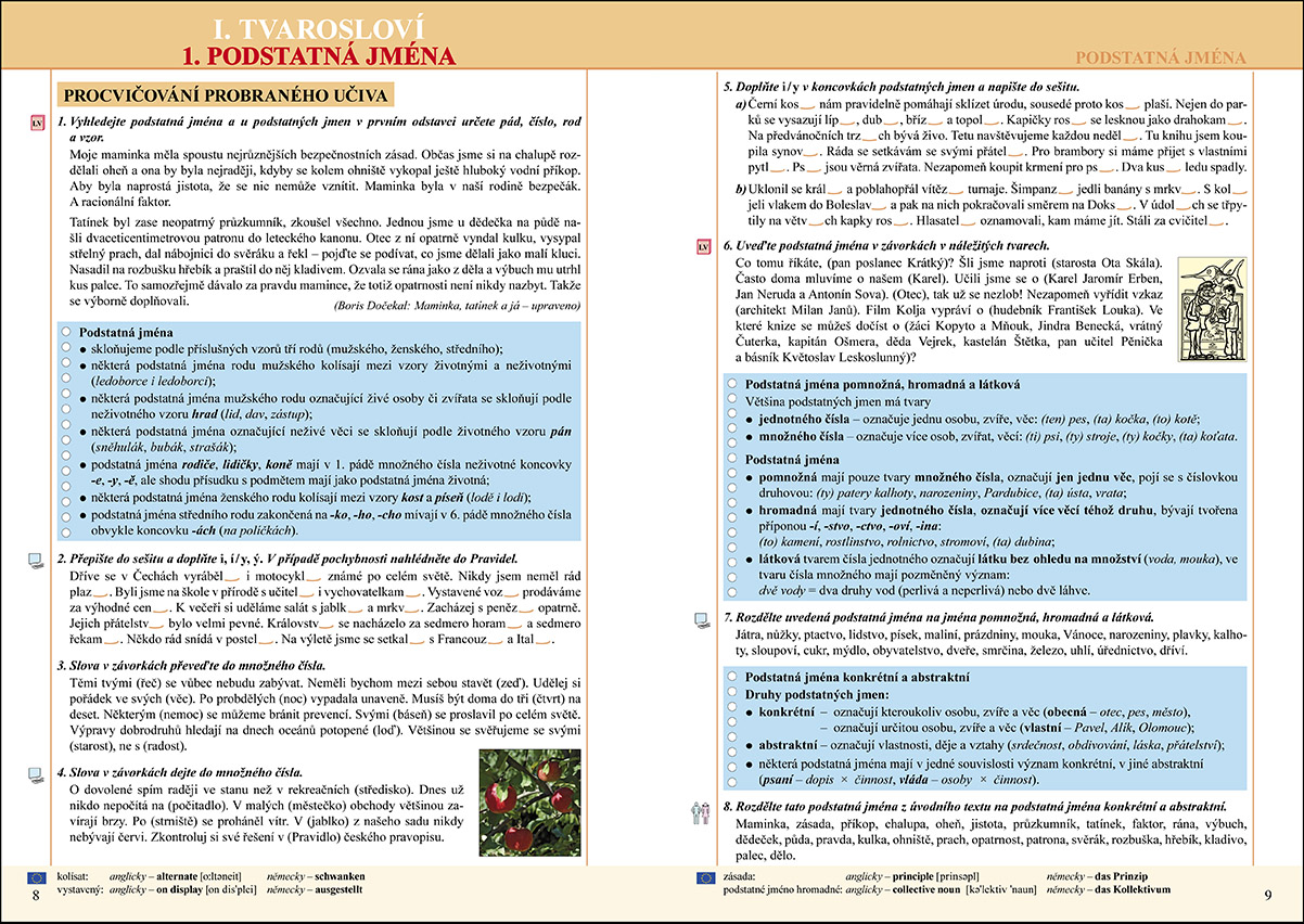 Učebnice má udělenu schvalovací doložku MŠMT. Nová učebnice je další v řadě učebnic vydávaných v souladu s RVP ZV, navazuje svým uspořádáním na učebnici 6. ročníku. Je rozdělena na kapitoly věnované tvarosloví, pravopisu, významu slova a nauce o slovní zásobě, skladbě i slohu a komunikaci. Každá kapitola obsahuje teorii učební látky i dostatečné množství cvičení, pomocí nichž si žáci nejen zopakují jazykové vědomosti a dovednosti, ale především si upevní i nové učivo. Navíc jsou zde pravidelně zařazovány testy a jazykové rozbory, které přispívají k cyklickému opakování učiva. Obdobně jako v učebnici pro 6. ročník je i zde brán zřetel na mezipředmětové vztahy, průřezová témata a skupinovou práci. Učebnice má udělenu schvalovací doložku MŠMT. Nová učebnice je další v řadě učebnic vydávaných v souladu s RVP ZV, navazuje svým uspořádáním na učebnici 6. ročníku. Je rozdělena na kapitoly věnované tvarosloví, pravopisu, významu slova a nauce o slovní zásobě, skladbě i slohu a komunikaci. Každá kapitola obsahuje teorii učební látky i dostatečné množství cvičení, pomocí nichž si žáci nejen zopakují jazykové vědomosti a dovednosti, ale především si upevní i nové učivo. Navíc jsou zde pravidelně zařazovány testy a jazykové rozbory, které přispívají k cyklickému opakování učiva. Obdobně jako v učebnici pro 6. ročník je i zde brán zřetel na mezipředmětové vztahy, průřezová témata a skupinovou práci.
