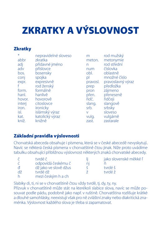 Nové vydání oboustranného chorvatského slovníku, ve kterém najdete běžně užívanou slovní zásobu současné chorvatštiny. Oceníte ho nejen na cestách, v práci i při studiu jazyka. Pomůže vám domluvit se, a také poradit si v každodenních situacích, přesněji se vyjadřovat a lépe komunikovat. Hesla, významy i překlady jsme vybírali tak, abyste ve slovníku našli nejčastěji užívaná slova a obraty, a to jak ze spisovné, tak i z hovorové chorvatštiny.