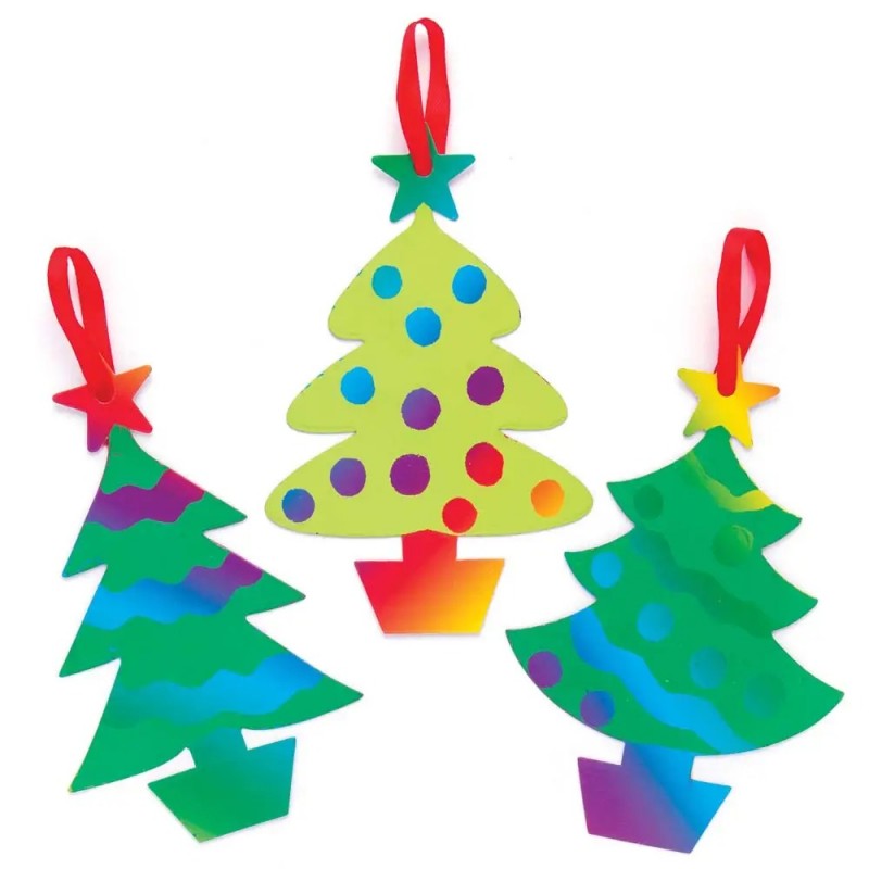Sada obsahuje 10 ks dekorací ve tvaru stromku se stužkou k zavěšení, které se seškrábáním libovolných tvarů a ornamentů promění v kouzelně nazdobené vánoční stromečky. Stromky jsou ve dvou různých barvách - tmavě a světle zelené a 5 různých tvarech. Velikost stromků je 14 - 15cm.