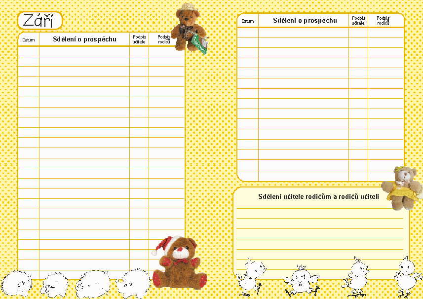 - Září, sdělení o prospěchu, sdělení učitele rodičům a rodičů učiteli