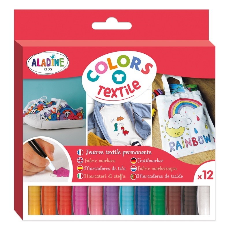 Dětské fixy na textil Aladine, 12 ks - základní barvy