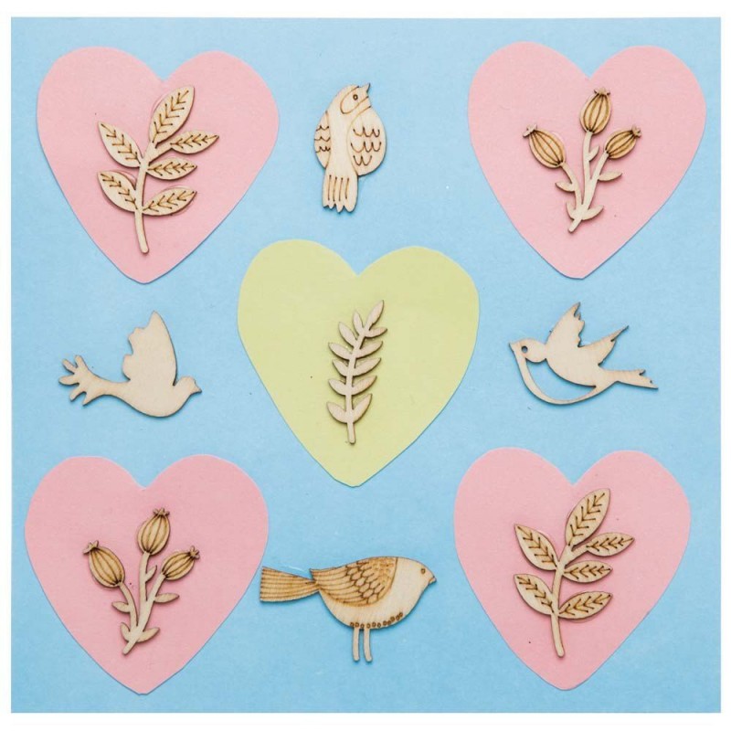 Dřevěné dekorativní tvary s tématikou ptáčků jsou ideální ke zdobení přání, kartiček a dalšímu tvoření. Vdechněte svým výtvorům 3D efekt. Balení obsahuje 9 různých tvarů velikosti 25 - 35 mm, celkový počet je 72ks.