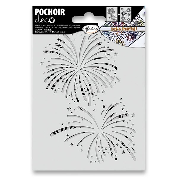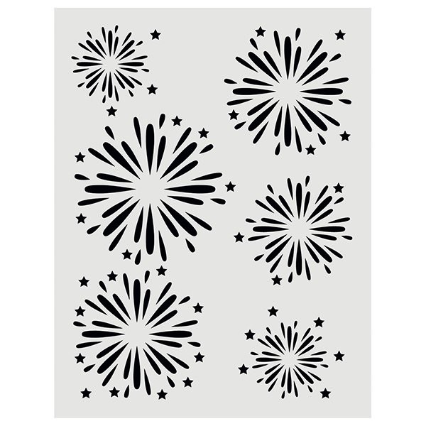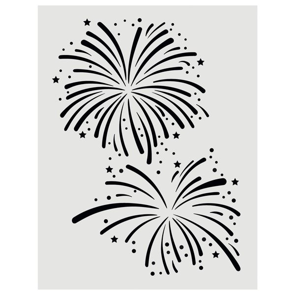 Plastová šablona s motivem ohňostroje je určená k dekoraci textilních i papírových projektů. Vzor se tupuje na textilii klasickou hustou textilní barvou nebo se dekoruje na papír pomocí aplikátoru a rychleschnoucích inkoustů nebo inkoustů ve spreji.