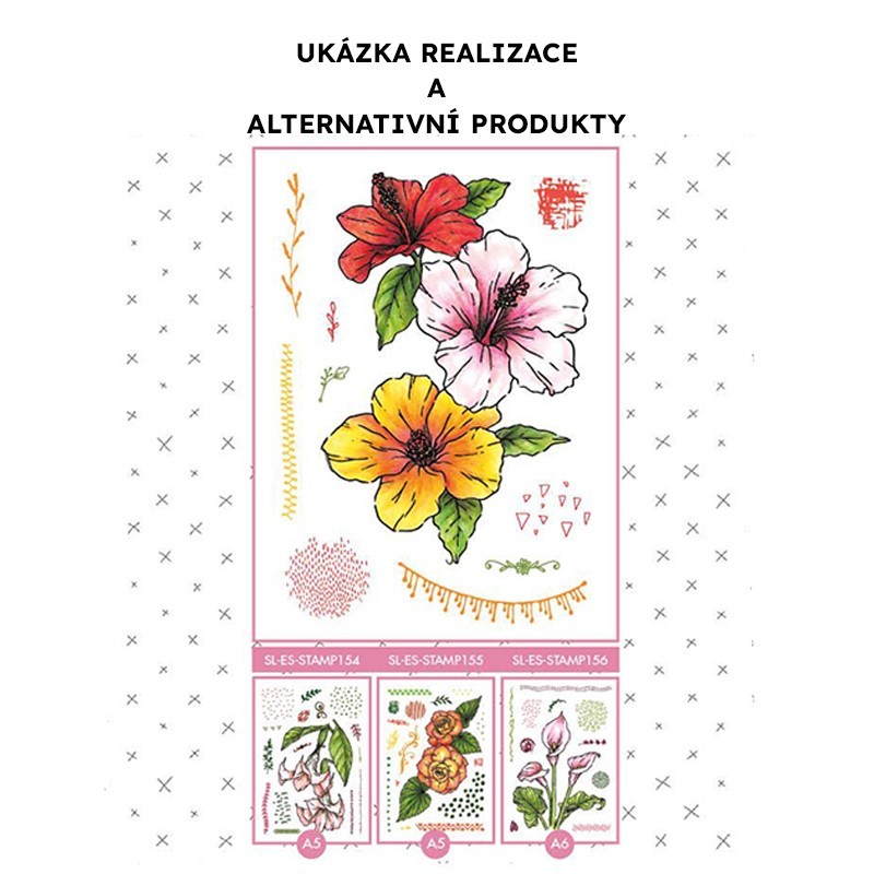 Sada silikonových razítek s motivem květů ibišku a drobných doplňkových motivů. Razítka jsou vhodná především na papírové tvoření, ale využijete je i při zdobení textilu nebo k dekorování různých polotovarů.