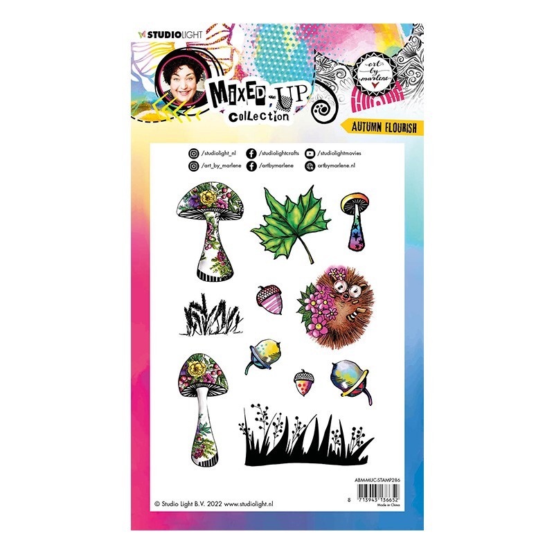 Gelová razítka Studio Light Mixed-Up (11 ks) – autumn flourish, houby a ježek