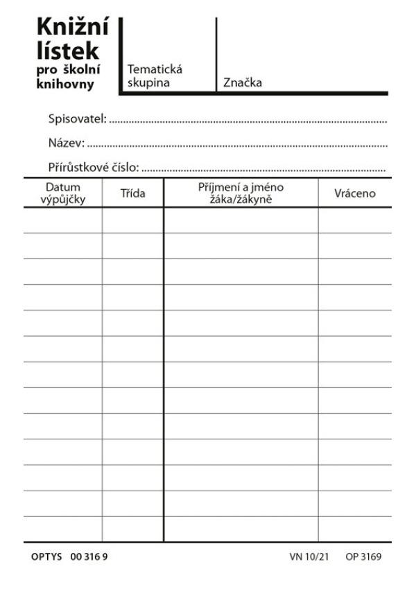 Knižní lístek pro školní knihovny, 120 x 75 mm