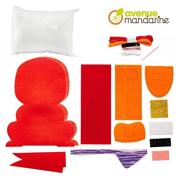 Kreativní sada Avenue Mandarine Dětské šití z kolekce Couz´IN, která umožňuje dětem objevení světa šití. Předem nastříhané kusy měkké barevné plsti s malými otvory usnadňují dětem použití jehly.