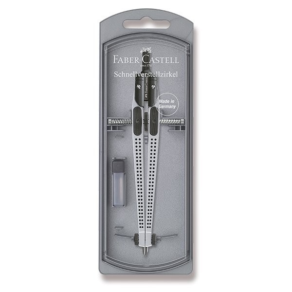 Kružítko Faber-Castell Grip Quick-Set 2001je kvalitní kružítko v designu GRIP pro kružnice do průměru 390 mm. Charakteristické jsou protiskluzové body po stranách ramen.