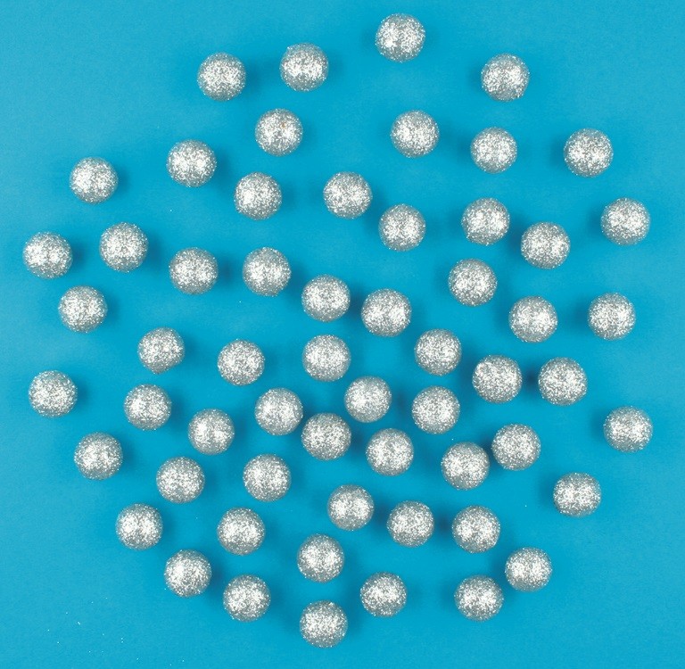 Kuličky stříbrné polystyrénové glitrové cca 1,5 cm, 60 ks