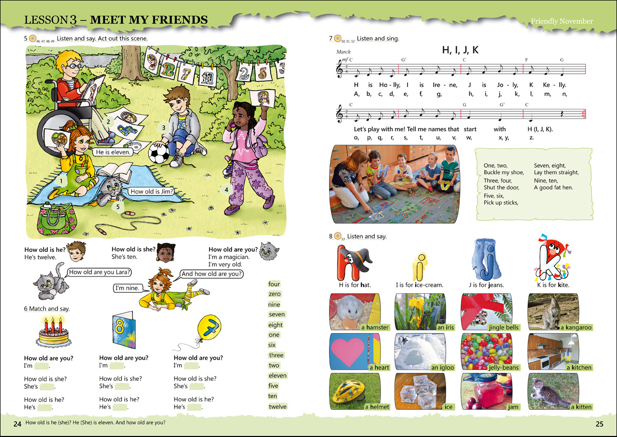 Vedle básniček a písniček oblíbených mezi dětmi z britského prostředí obsahují naše učebnice také autorské básně a písně s využitím základní, tematicky koncipované slovní zásoby. Nabízí tak nejen zábavné, ale také snadné osvojení si probírané slovní zásoby a mluvnických jevů každé lekce.