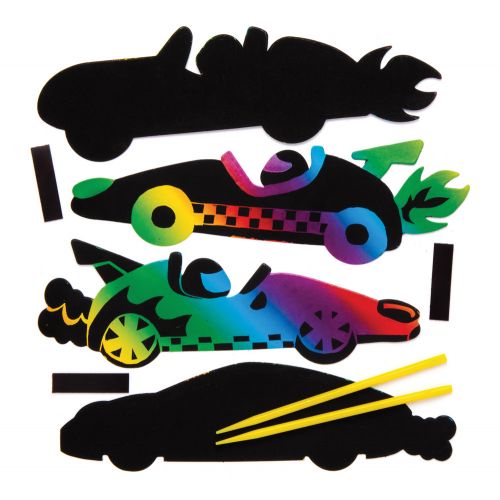 Sada pro výrobu 10 obrázků závodních aut s magnetkou. Po seškrabání vrchní vrstvy se objeví duhové barvy. Velikost obrázků je asi 17cm-20cm. Sada obsahuje vytvarovaná auta se speciální vrstvou, po jejímž seškrabání se objeví duhové barvy, škrabací tyčku a samolepicí magnetku. Obrázek si můžete seškrabat podle vaší představivosti, kreativitě se meze nekladou.