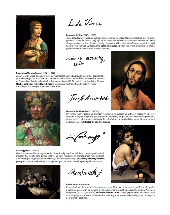 Papír 200g/m2, listy jsou perforovány pro snadné odtržení, na každém listu je jeden obraz + informace o něm. Obsahuje i medailonky autorů.