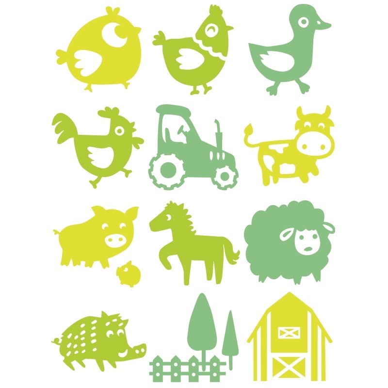 Pěnová malovací razítka StampoPaint připomínají známá bramborová razítka. Lze je snadno nabarvit jakoukoliv barvou. Motiv Farma, 12 razítek v balení.