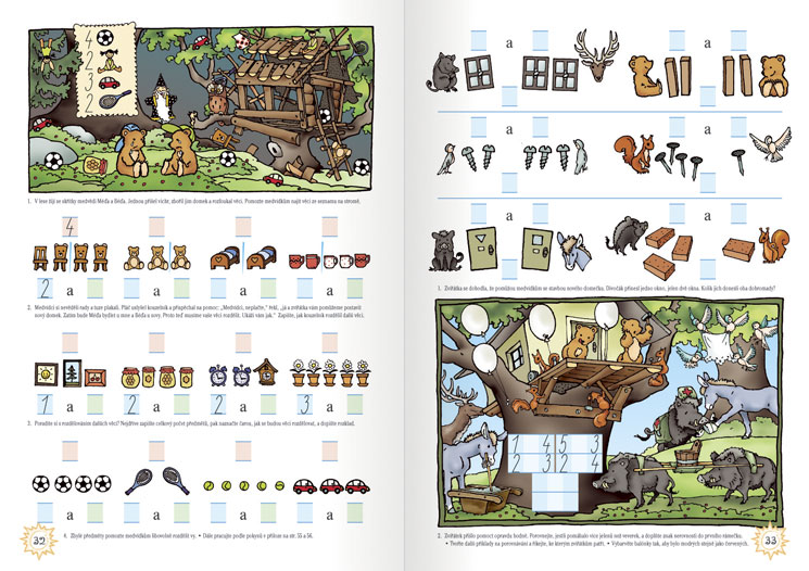 - Dává žákovi velký prostor si v co nejvíce různých skutečných nebo pohádkových situacích uvědomovat a upevňovat, co je to počet, a tedy rozumět obsahu jednotlivých čísel.